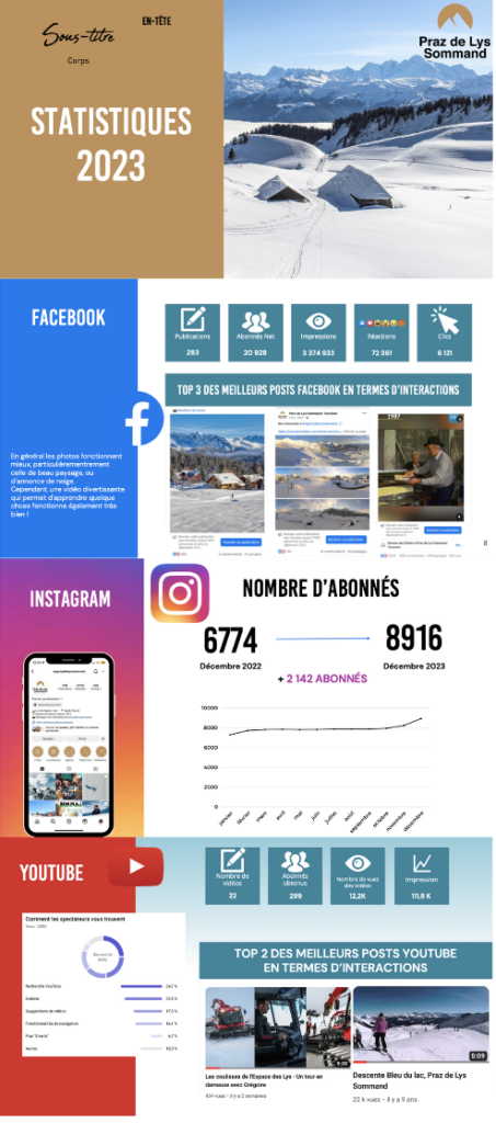 Ensuite à côté de ma mission principale j’ai pu faire pleins d’autre choses, comme un bilan de statistique de l’année 2023, la gestion d’un jeu concours sur les réseaux sociaux, analyses stratégiques de la saison passé puis les réflexions sur la stratégie de l’été, du community management, de la photographie, du graphisme, du montage vidéo, de la veille et du relationnel. Voici quelques visuels :